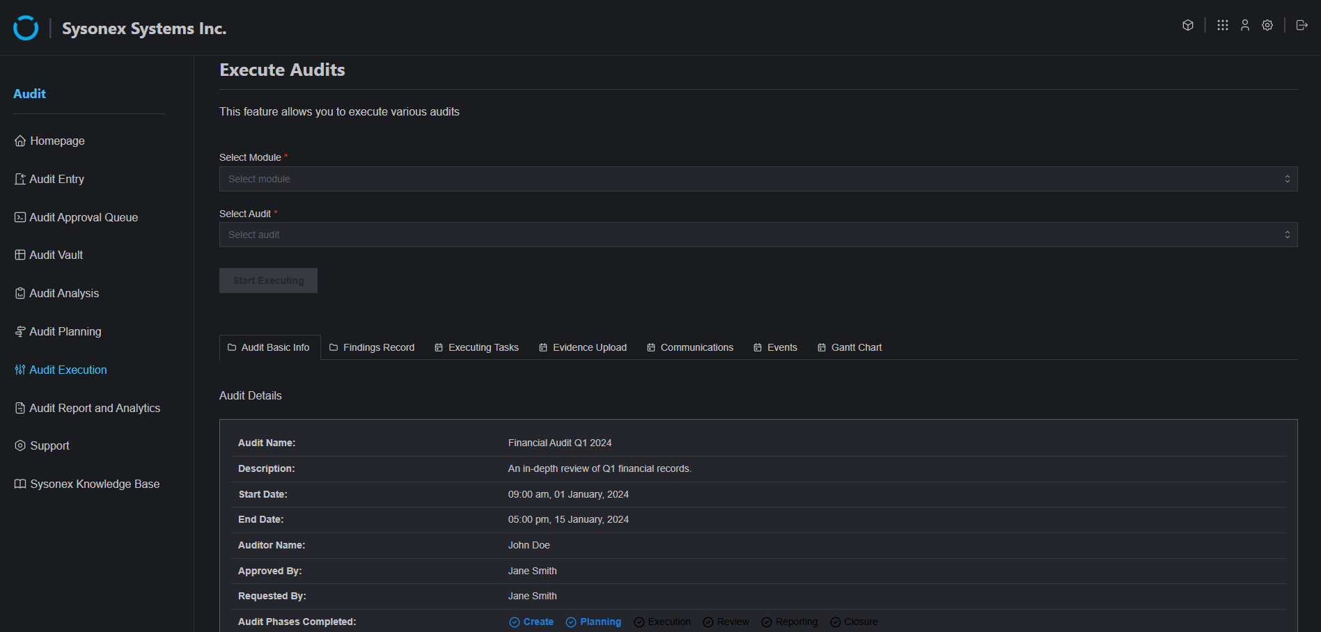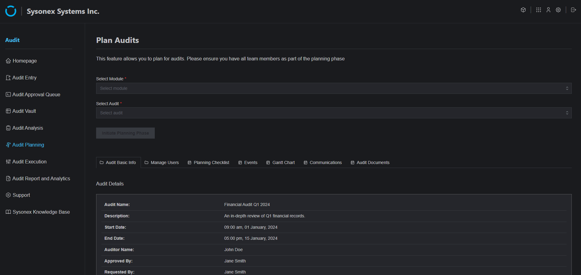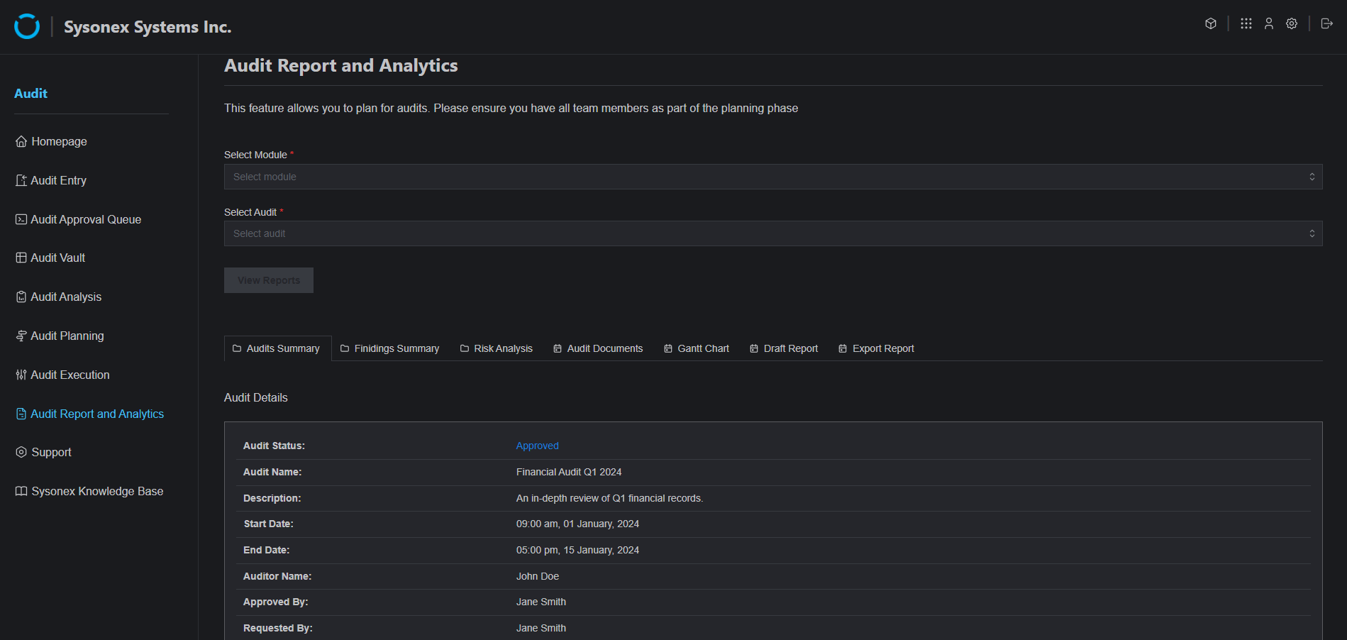 SysAudit by Sysonex is a powerful, all-in-one IT audit management platform designed to simplify every stage of your audit process. From creating audit entries and planning with your team to executing checks, managing approvals, and generating detailed reports — SysAudit brings everything together in one clean, easy-to-use platform. With built-in compliance support for frameworks like ISO 27001, SOC 2, HIPAA, and GDPR, your organisation stays audit-ready at all times. Whether you’re a small team or a large enterprise, SysAudit gives you the visibility, control, and confidence to manage audits smarter and faster than ever before.