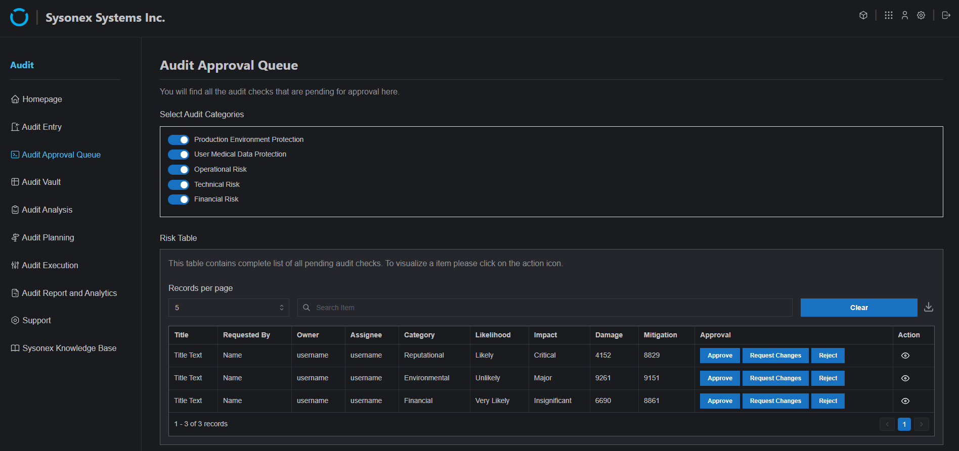 Sysonex product centralized repository allows you to view and prioritize GRC items to understand events that need your focus and effort!