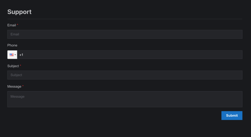 - Action: Complete the form available on the Support page with the relevant details of your query or issue, and click Submit.